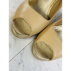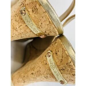LILLY PULITZER Kristen Slingback Wedge 9M Tan Gold 4.5" Cork Peep Toe Sandal EUC