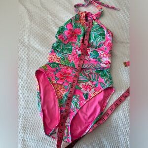 LILLY PULITZER LEDGER HALTER ONE PIECE MULTI JOURNEY TO THE JUNGLE SWIMSUIT NWT
