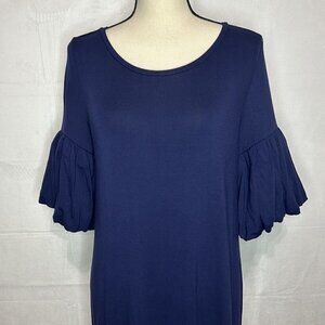 LILLY PULITZER LINDELL Sz Small Navy Viscose Stretch Shirt Dress Bubble Sleeves. Style# 29758. 96% viscose, 4% spandex and extremely soft.
