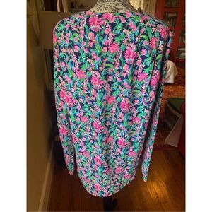 LILLY PULITZER LOW TIDE NAVY GARDEN VARIETY BLYTHE LUXLETIC PULLOVER TOP L. Great condition.