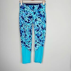Nice cropped leggings by LUXLETIC for Lilly Pulitzer. Navy blue and turquoise In Too Deep coral print. Great preowned condition. Women’s size extra small (xsmall, X-small).