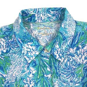 LILLY PULITZER Lagoon Linen Cover-Up Shirt Dress Women S Oversize Beach Resort