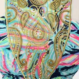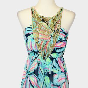LILLY PULITZER Lannette High Tide Dancing Lady Maxi Halter Dress Size 10