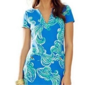 LILLY PULITZER Layton Blue Crush Shift Dress She Got Sole V Neck