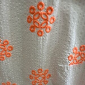 White and Cantaloupe embroidered cantaloupe. Peplum hem