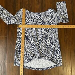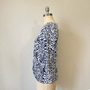 LILLY PULITZER Long Sleeve Top Womens XS Blue White Ikat Twist Front Knit Boho W12881