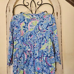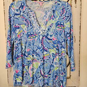 LILLY PULITZER Lyndsea Tunic Blue Peri Peri Pinch Limes Crabs SZ S