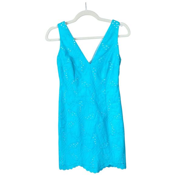 LILLY PULITZER Madden Dress Jumno Pattern Petal Eyelet Shorefly Blue Size 00