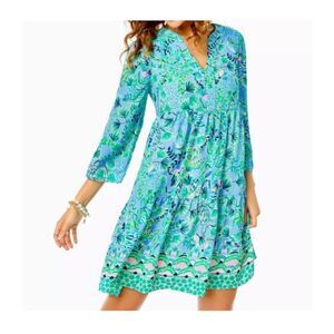 LILLY PULITZER Martine Dress Frenchie Blue Mosaic Shells Dress XXS $228.00
