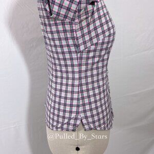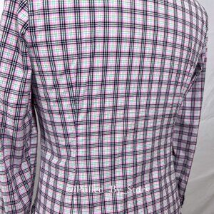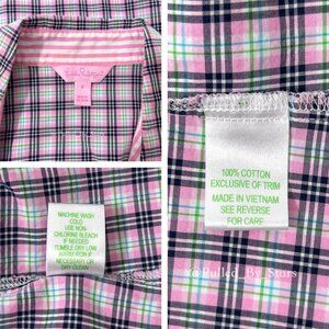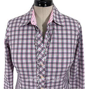 LILLY PULITZER Pink, Green, Blue, White Plaid Long-Sleeve Ruffle Button-Front Shirt:
