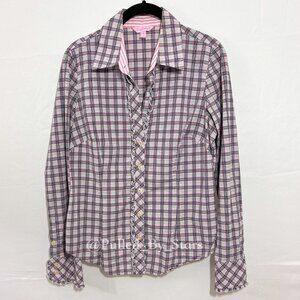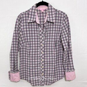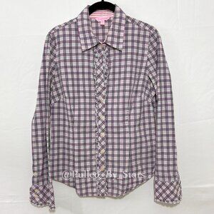 LILLY PULITZER Multicolor Plaid Long-Sleeve Ruffle Button-Front Shirt - Size 8