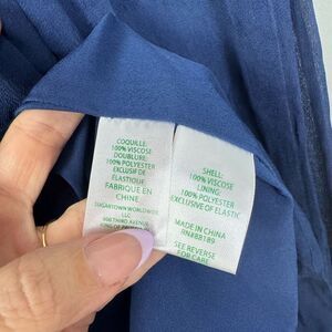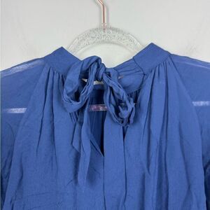 This elegant Lunar Blue navy blouse by Lilly Pulitzer features a stylish bow tie at the back and flowing sleeves. Sheer. High neckline. Brand NWOT. Women’s size 2.