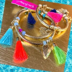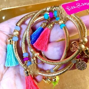 LILLY PULITZER NWT 3 pc BOHO GOLD TASSEL BRACELET TRIO - STRETCH - STACK