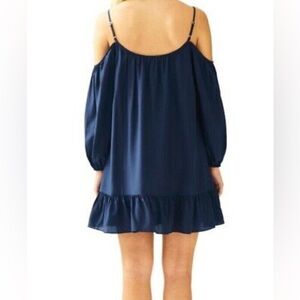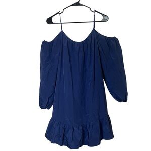 LILLY PULITZER Navy Blue 100% Silk Cold Shoulder Ruffled Mini Dress Peasant XS