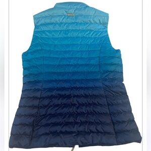 Color/Pattern: Low Tide Navy Ombre Approximately 24ln From Shoulder To hem. Design Details: Ombre Quilted Design, Mock Collar, And Dual Front Zip Pockets Zipper Front 100% Recycled Polyester.