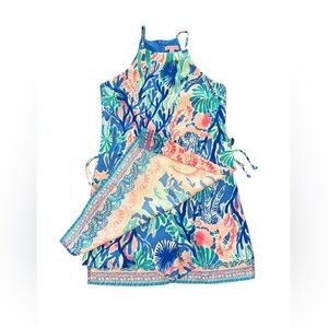 Your Pearl dress dreams just came true- introducing the Pearl Romper. This romper is in an engineered print and has feminine bows at the side slits. Throw on your Mckims and you're ready for a day in the sun.