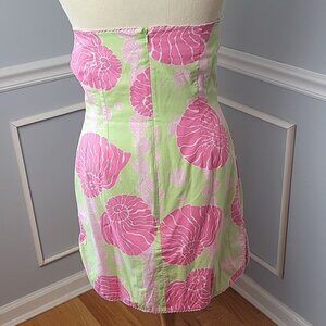 LILLY PULITZER Pink Nautilus Shell Print Strapless Halter Cotton Sheath Dress 4