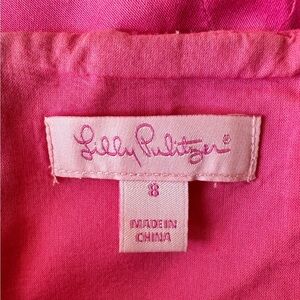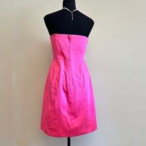 LILLY PULITZER ~ Pink Strapless Dress w/White Trim Beaded Design size 8