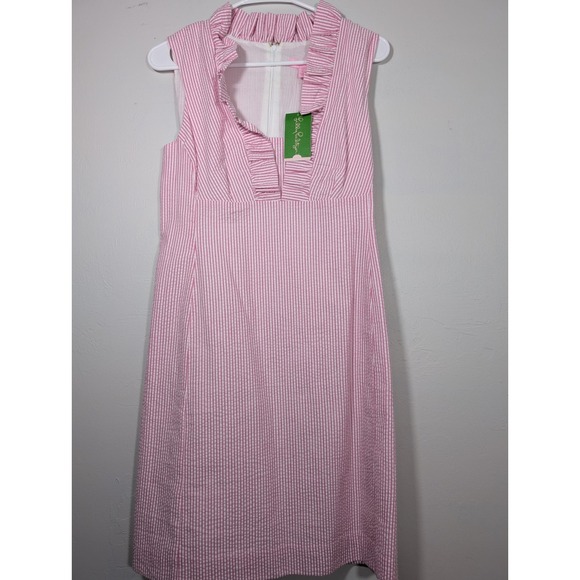 LILLY PULITZER Pink White Striped Sleeveless V-Neck Dress Size 6 New
