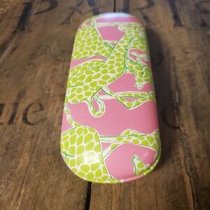 LILLY PULITZER Pink|Green Giraffe Print Hardshell Eyewear|Sunglass Case Storage