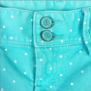 Adorable!! Turquoise jeans with white polka dots. These are the Worth Skinny Mini Zip Jeans by Lilly Pulitzer. Great preowned condition!! Size 0.