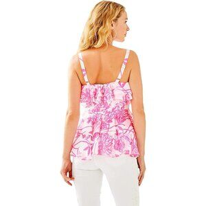 This Lilly Pulitzer tank top in resort white and pink is brand new and sized 00. Crafted from polyester, the top features an olive pattern for a fresh, stylish look. New with tags never worn.