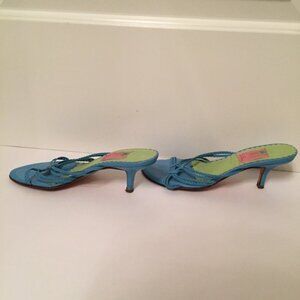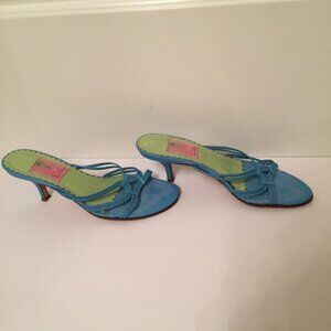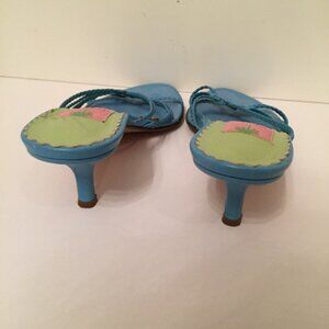 LILLY PULITZER SHOES HEELS 3.5” SANDAL BLUE LEATHER BRAIDED STRAP ITALY