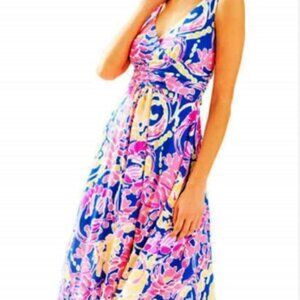 LILLY PULITZER SLOANE MIDI DRESS BRILLIANT BLUE CATCH AND RELEASE M MEDIUM