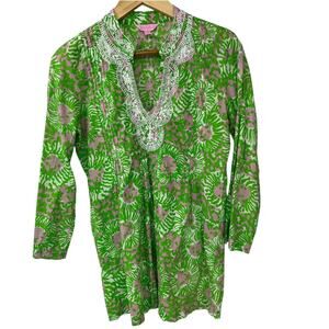 LILLY PULITZER Sarasota Sunnyside Cabana Lion Print Tunic V-Neck SZ Small