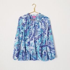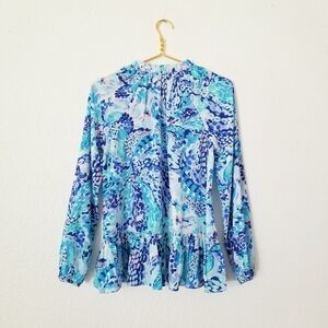 LILLY PULITZER Savanna Top in Turquoise Oasis Wave After Wave Size Small