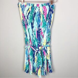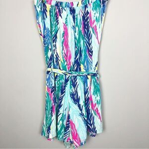 Adorable strapless Ritz romper by Lilly Pulitzer! Multicolor feather print called Light as a Feather. Removable tie sash belt. Pockets on the shorts. One piece. Fun but comfy! Can be dressed up or down. Great condition! Womens size extra small (XSmall, x-small).
