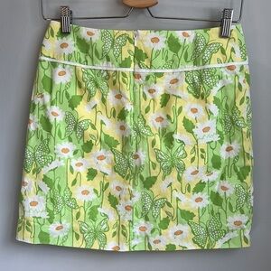 LILLY PULITZER Vintage White Label Green yellow daisy Butterfly Skirt Sz 0