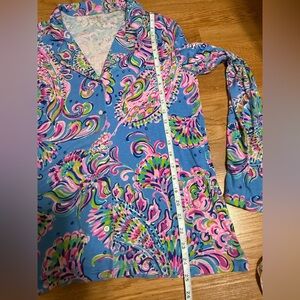 LILLY PULITZER WOMENS PJ KNIT LS BUTTON-UP TOP MULTI MERMAID GROTTO KNIT SIZE L