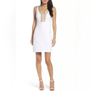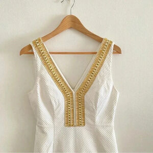 LILLY PULITZER White Gold Embellished Eliot Textured V-Neck Shift Dress Sz 4