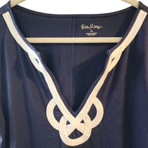 LILLY PULITZER Woman's Brewster T-Shirt Dress in True Navy 100% Pima Cotton (M)