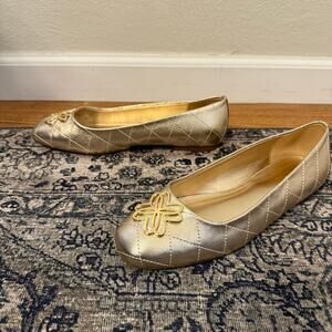LILLY PULITZER Women’s 8.5 Patina Ballet Flats Gold Quilted Embellished