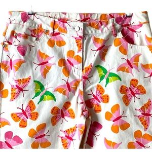 LILLY PULITZER Women’s Butterfly Print White Cropped Cotton Blend Jeans Size 10