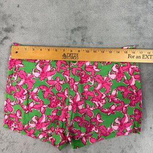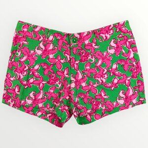 LILLY PULITZER Women's Textured Floral Butterfly Mini Shorts Green and Pink Cute Summer Girly Short.