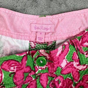 LILLY PULITZER Womens Textured Floral Butterfly Green Pink Mini Summer Shorts 6