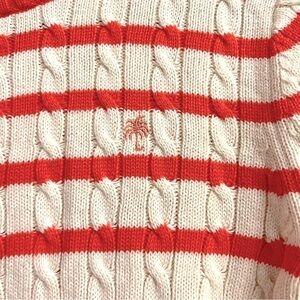 LILLY PULITZER Y2K Cable Knit Crew Neck Coral Striped Cotton Sweater Size S
