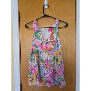 LILLY PULITZER for TARGET Nosey Posey Print V-Neck Sleeveless Shirt Sz XS.
