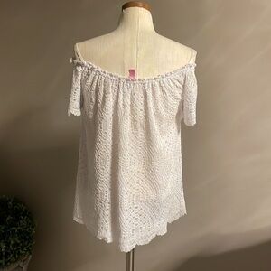 LILLY PULITZER off shoulder scolloped lace top / blouse / shell WHITE size Med
