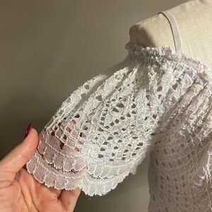 Beautiful scolloped textured lace off the shoulder top short sleeve RELAXED fit