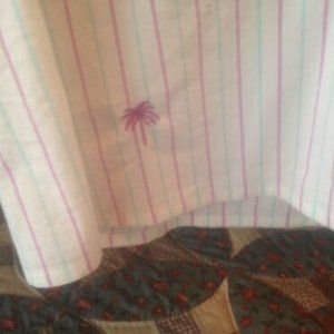 LILLY PULITZER * slvls WHITE button shirt PURPLE PALM TREE turquoise stripe * 8