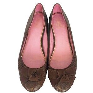 LILLY Pulitzer Brown Snakeskin Leather Ribbon Bow Slip On Ballet Flat