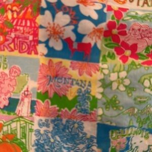 LILLY Pulitzer Shorts, Bright Design Stamp Design with States, Size 2