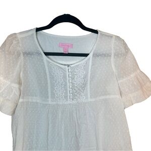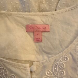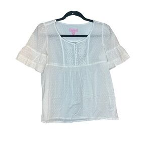 LILLY Pulitzer White Swiss Dot Cotton Embroidered Short Sleeve Blouse Size 0