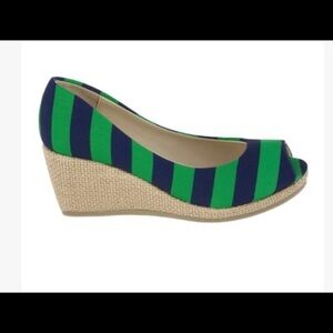 LILLYBEE U UNIVERSITY KELLY GREEN DARK BLUE STRIPED WEDGES SIZE 7 NEW NO TAGS