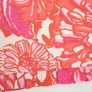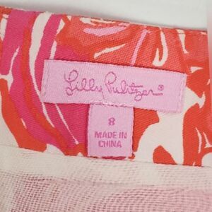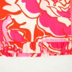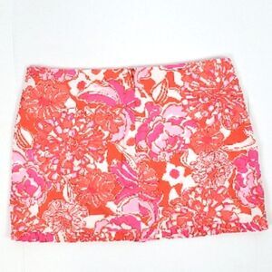 Brighten your wardrobe with this vibrant floral skirt. Featuring a stunning pink and orange floral pattern and ruffled hem. Zips on back and is fully lined.