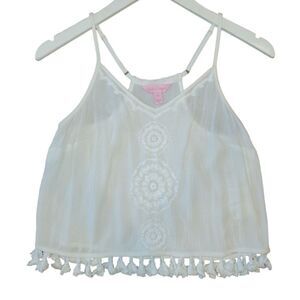 LILLY PULITZER WHITE EMBROIDERED TASSLE CROP TOP SLEEVELESS TOP RESORT XS